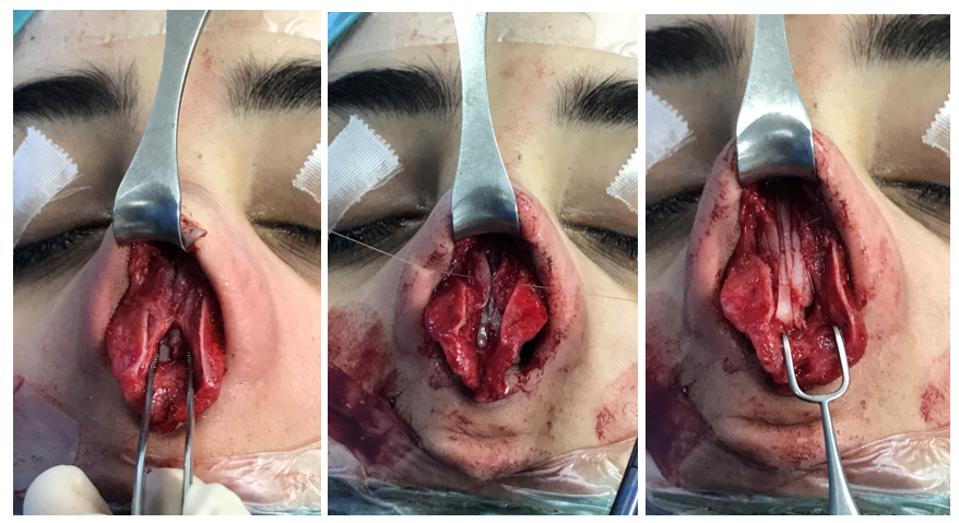 When the ULCs are separated from the nasal septum there are three options in reconstructing the middle vault: turn the ULCs in, suture them to the nasal septum, or suture to each other over the nasal septum. In certain cases, the addition of spreader grafts can be very helpful to rebuild the middle vault more effectively.