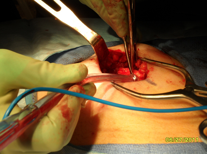 1. Donor site inspection: The wound is evaluated for any obvious air leak. If none is seen, the wound is irrigated with sterile saline and a valsalva maneuver is performed. If no air leak is visualized, then the wound can be closed in layers with a closed suction drain left in place.