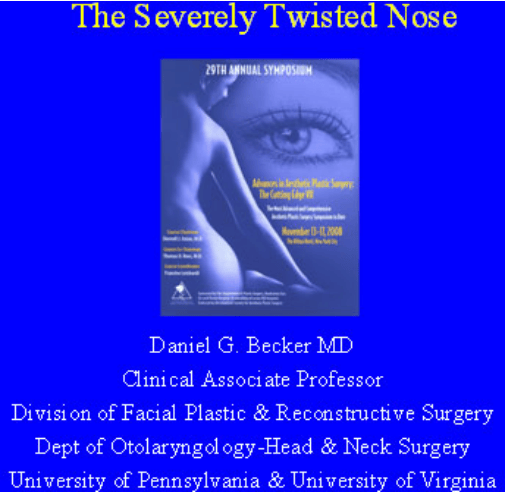 Dr. Becker was a featured Guest Speaker at the 29th Annual Symposium in New York City, Advances in Aesthetic Plastic Surgery: The Cutting Edge 7. He was the invited speaker in this New York City Rhinoplasty Course. The lecture that he gave on the subject of “The Complex and Severely Twisted Nose” has been transcribed and can be found here.