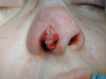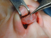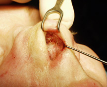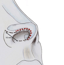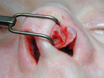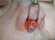 Figure 2: Incision starts in the foot of the medial crus inside the margin of the columella